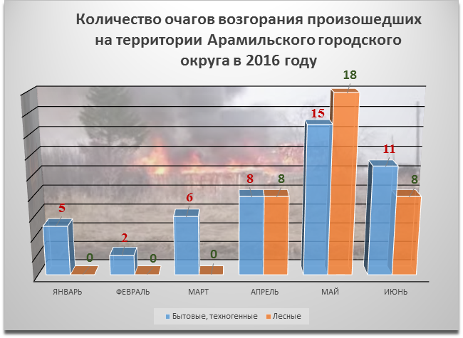 Всего в 2016 году на территории округа зарегистрировано 47 неконтролируемых горения вне специального очага произошедшее в бытовых помещениях и на прилегающих территориях, а также на территории техногенных объектов.