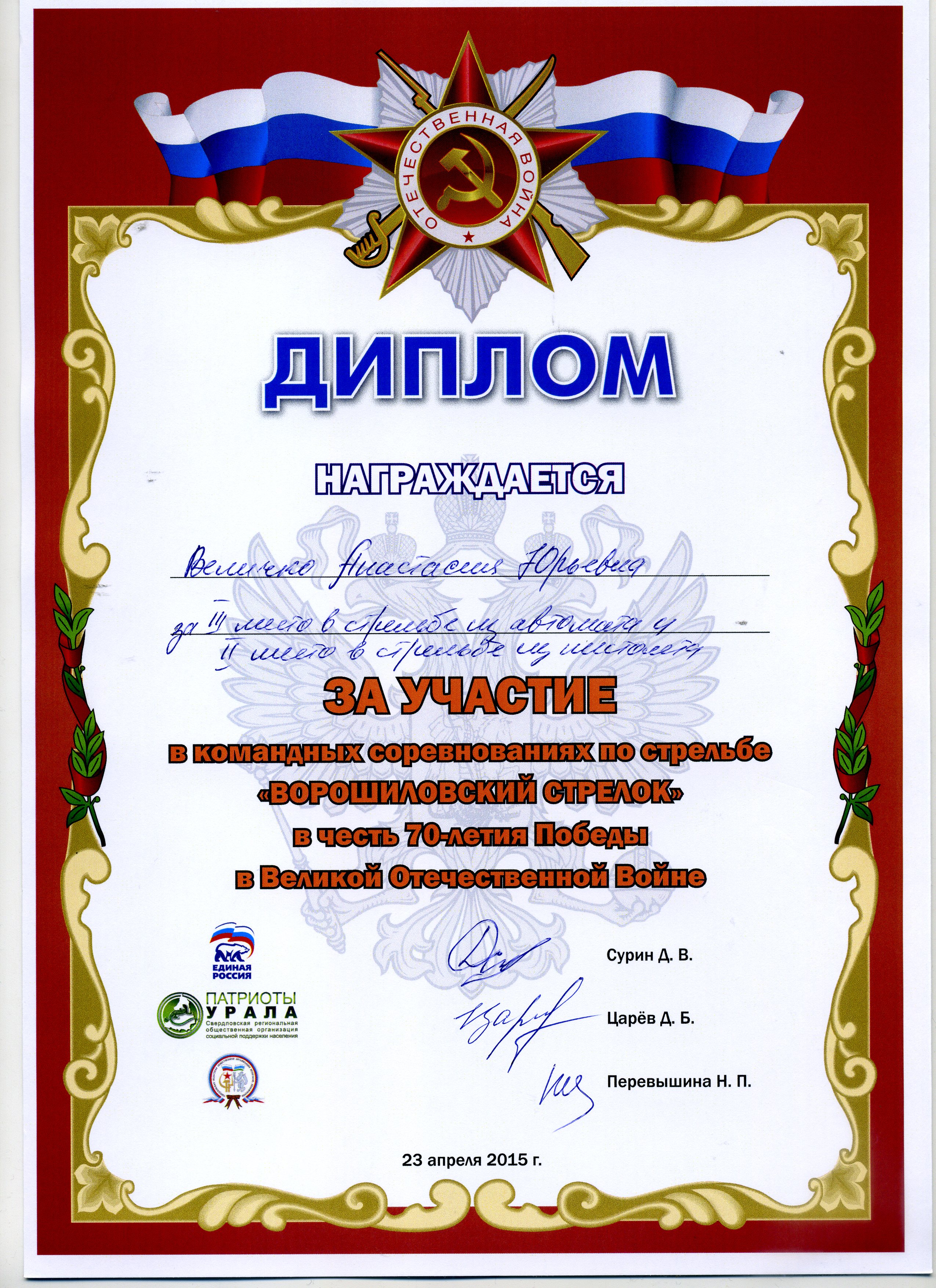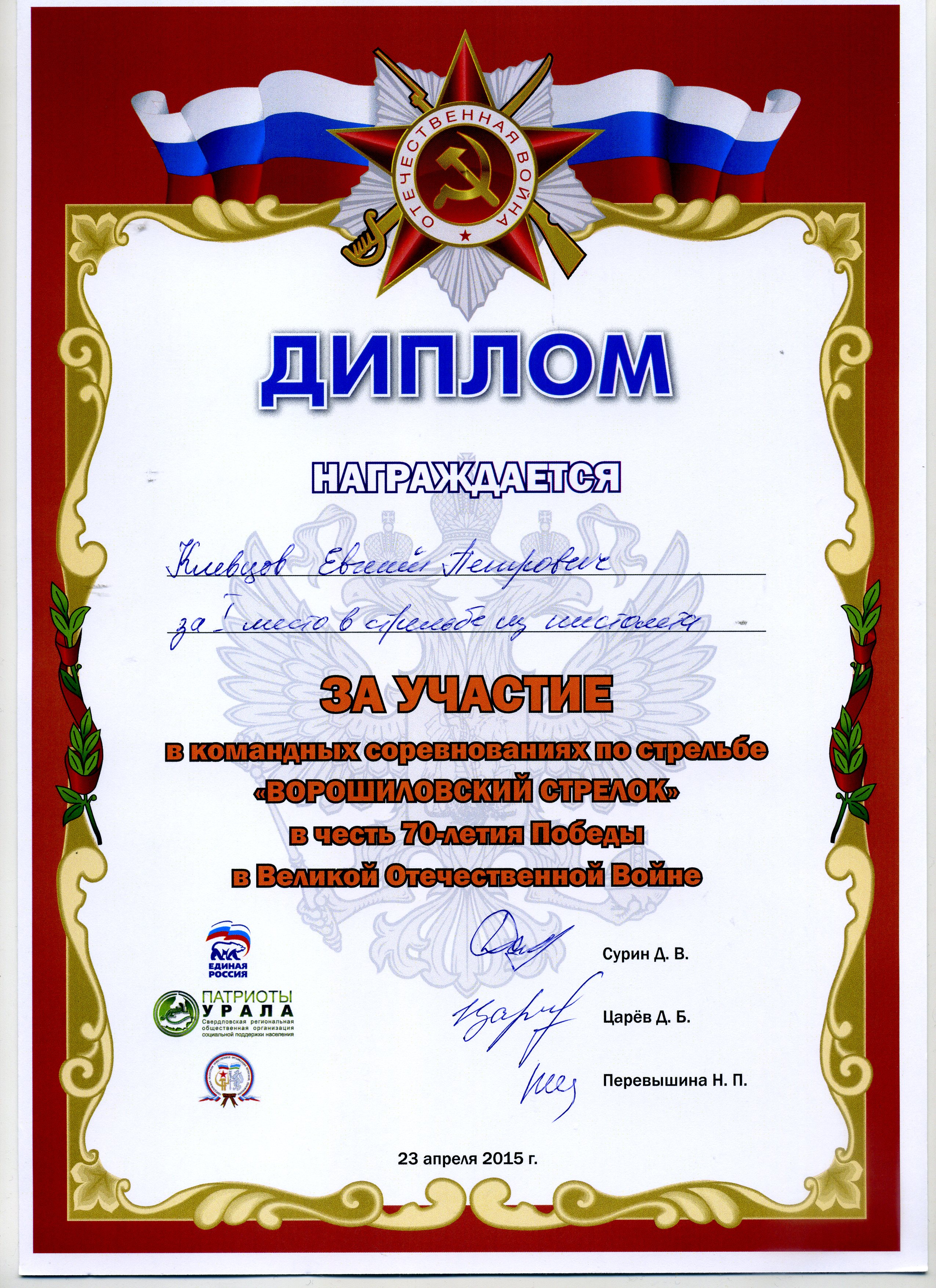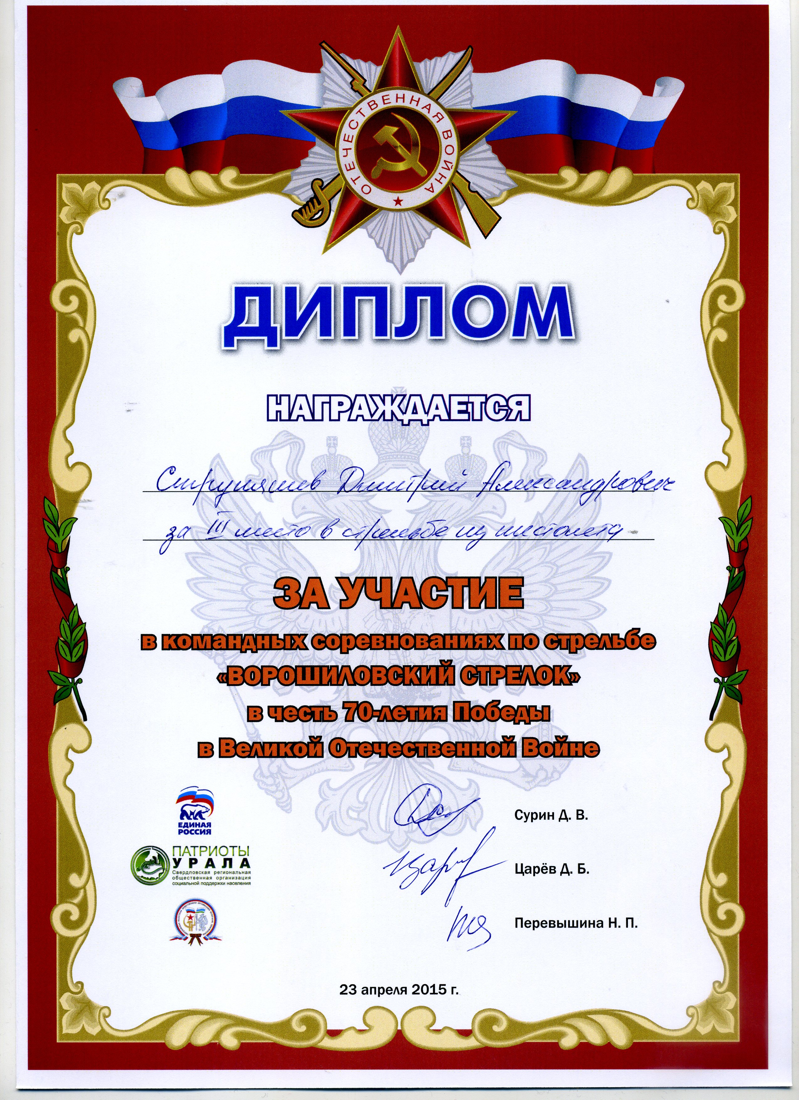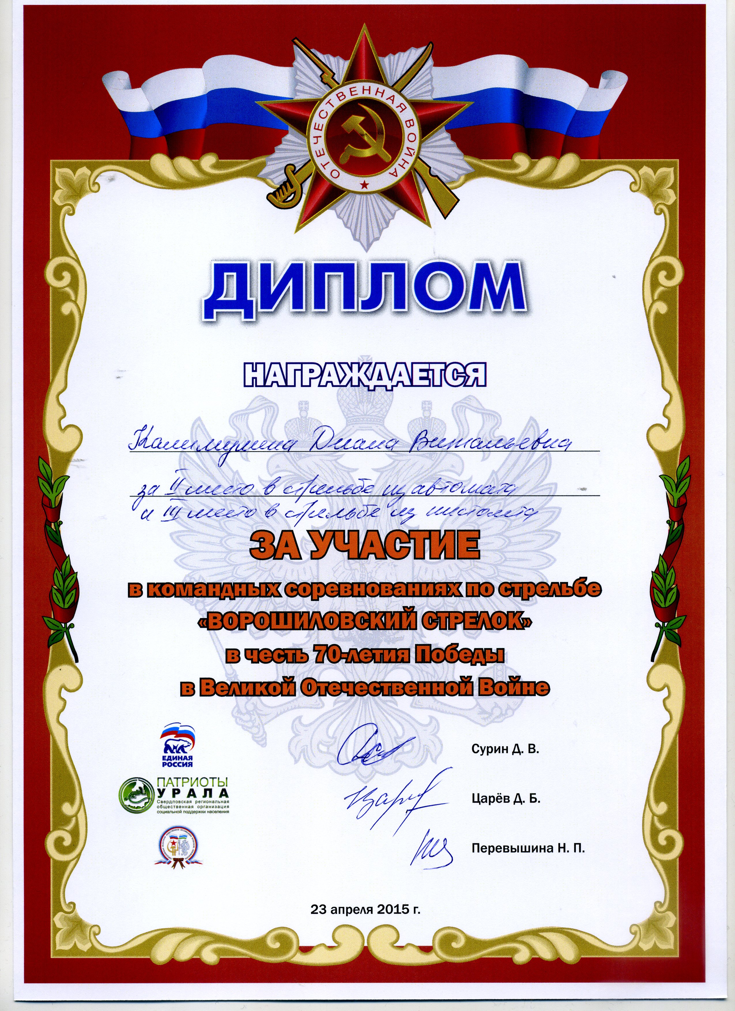 | 10 | Струняшев д. | Пистолет | 3 место |