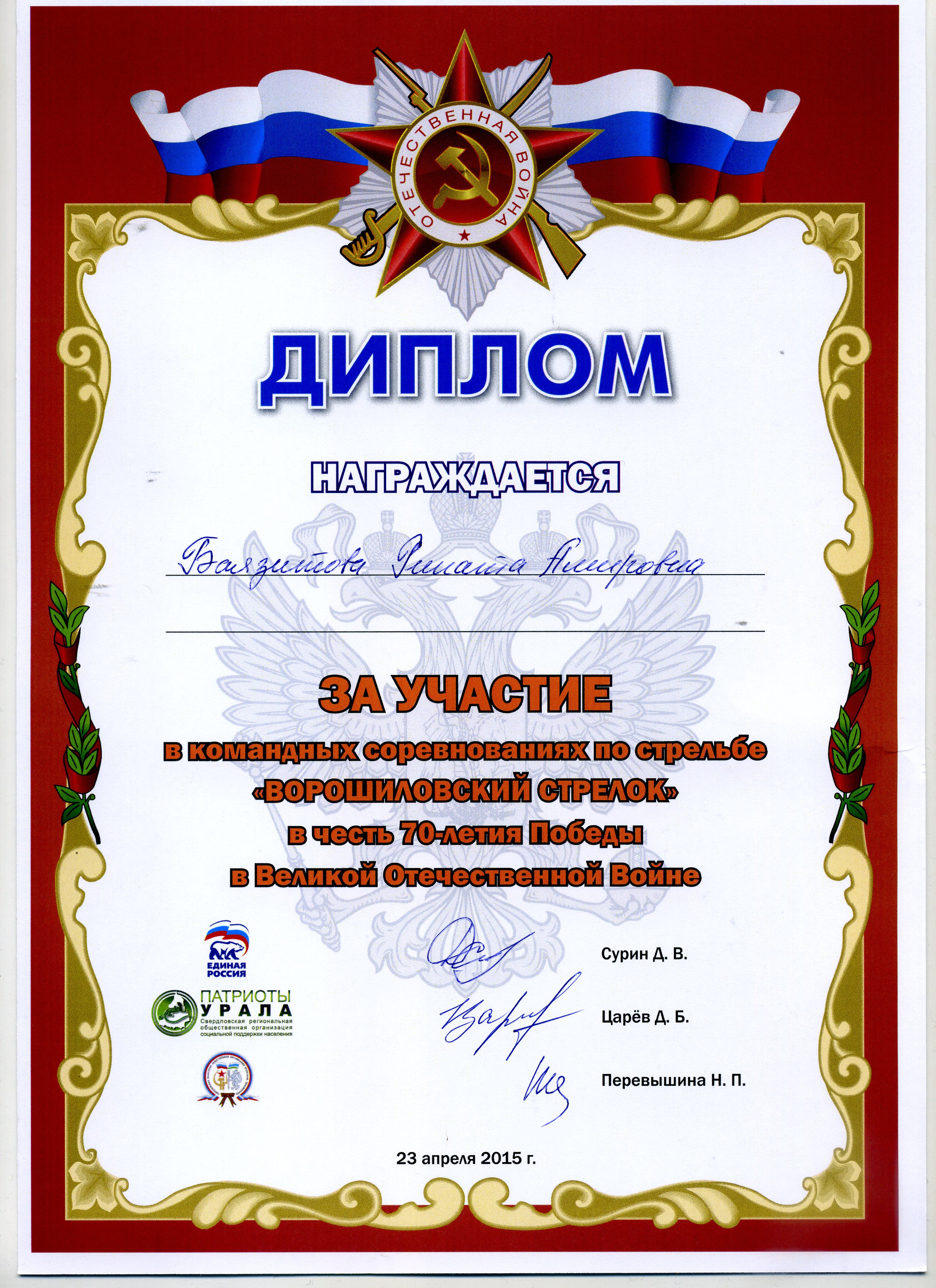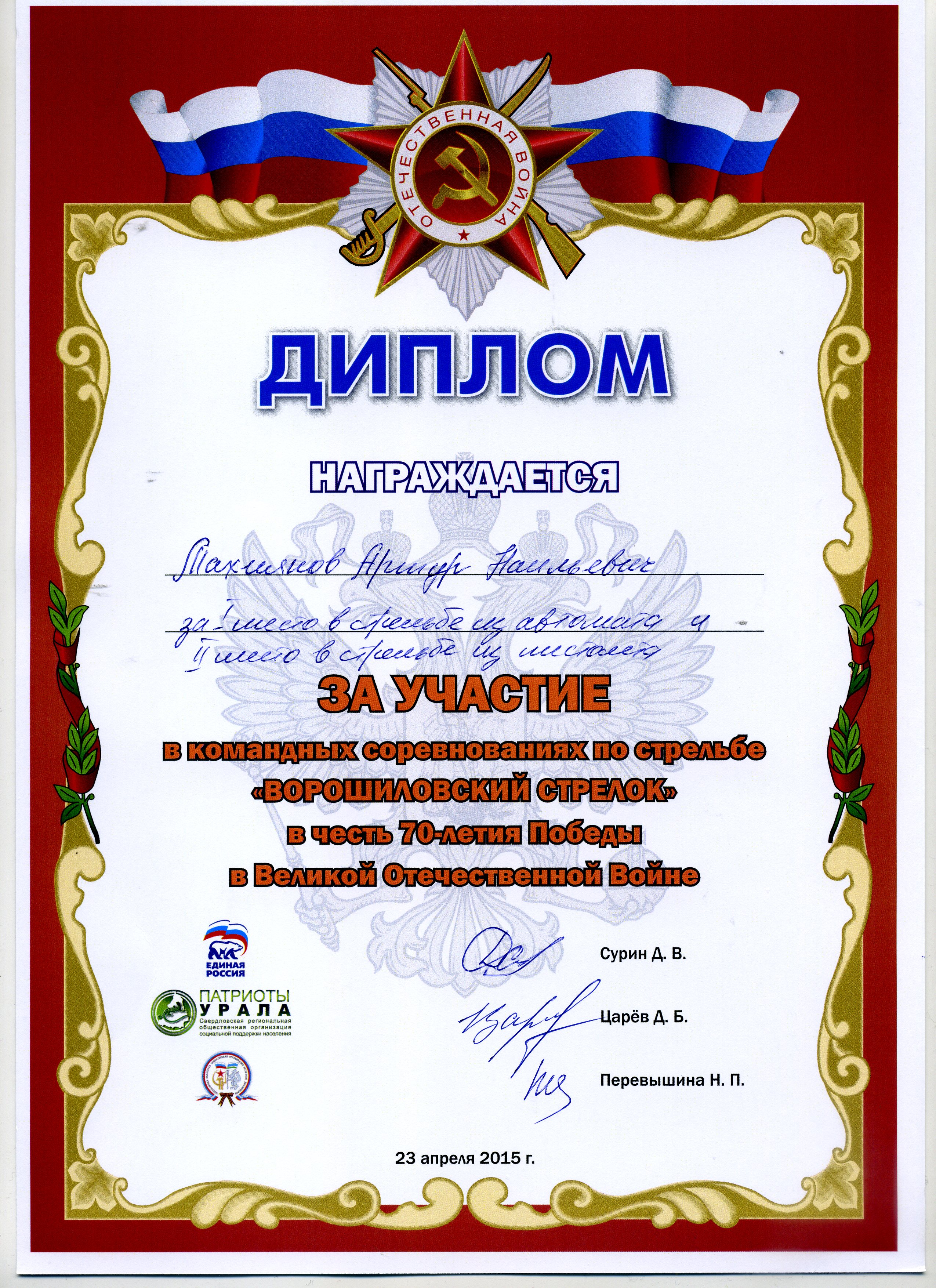 | 10 | Махиянов ар. | Автомат | 1 место |
