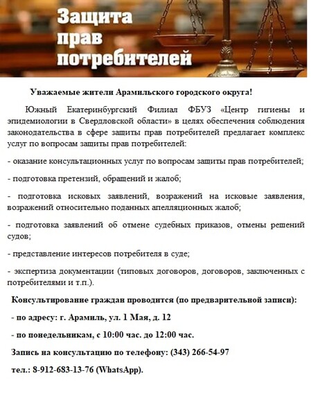ЕЖЕНЕДЕЛЬНО, по четвергам с 14.00 до 16.30 часов по адресу г. Арамиль, ул. 1 Мая, д. 4, кабинет 6