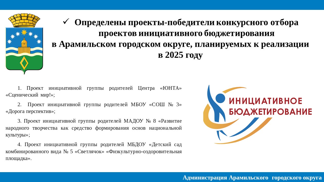 О результатах проведения конкурсного отбора проектов инициативного бюджетирования в Арамильском городском округе, планируемых к реализации в 2025 году