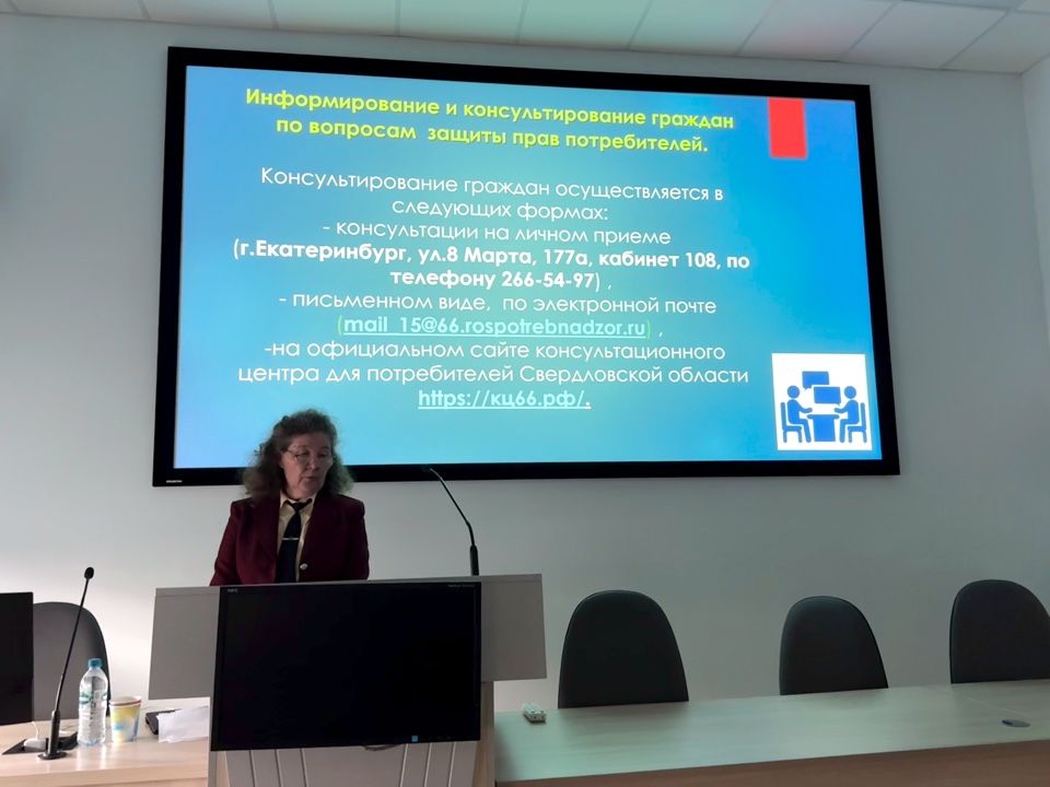 Доклад представила Шатова Надежда Владимировна - Начальник территориального отдела Управления Роспотребнадзора по Свердловской области в Чкаловском районе Екатеринбурга, городе Полевской и Сысертском районе.
