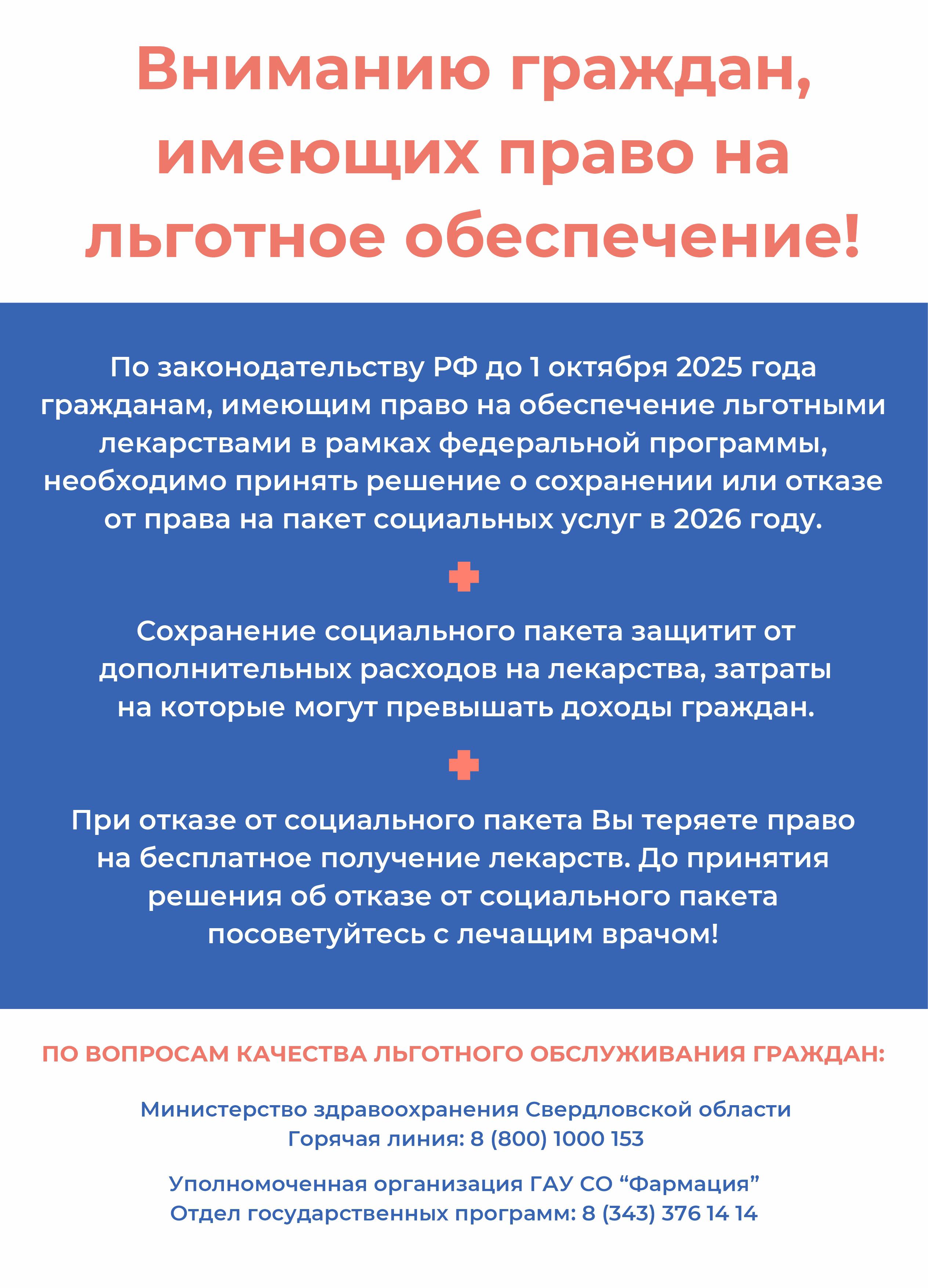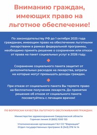 Внимание граждан имеющих право на льготное обеспечение 05 августа 2025 г.