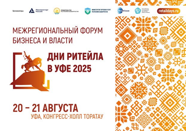 20-21 августа 2025 года в г. Уфа проводится ежегодный межрегиональный форум бизнеса и власти «Дни ритейла в Уфе» (далее – Форум), организованный Министерством промышленности и торговли Российской Федерации совместно с Правительством Республики Башкортостан, Министерством торговли и услуг Республики Башкортостан и Российской ассоциацией экспертов рынка ритейла.
