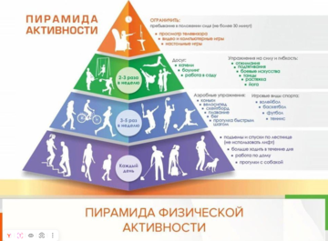 - Для получения дополнительных преимуществ для здоровья увеличить время умеренной физической активности до и более 300 минут или время интенсивной физической активности до и более 150 минут в неделю.