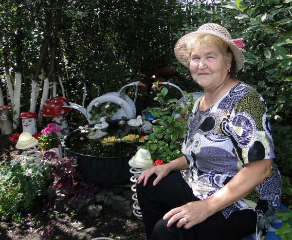 «Просто захотелось, чтоб было красиво, — говорит она.- Захотелось чего-нибудь для души. Я и раньше любила поделки делать, с внуками этим занималась, и вот решила украсить своими творениями огород».