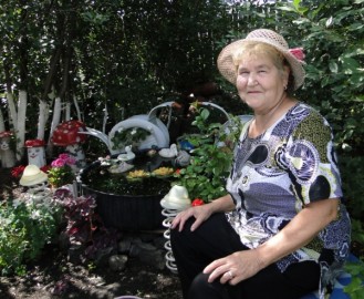 Ангелина Ивановна много лет трудилась на «Волне», после выхода на пенсию проработала еще десять лет, а год назад оставила работу навсегда. Зимой они с мужем живут в квартире, а летом перебираются на дачу на улице Красноармейской. Пять лет назад Ангелине Ивановне захотелось украсить свой участок, заполнить чем-нибудь пустующие уголки. Фантазии ей было не занимать, руки у нее умелые — обычный огород начал превращаться в сказочную поляну.