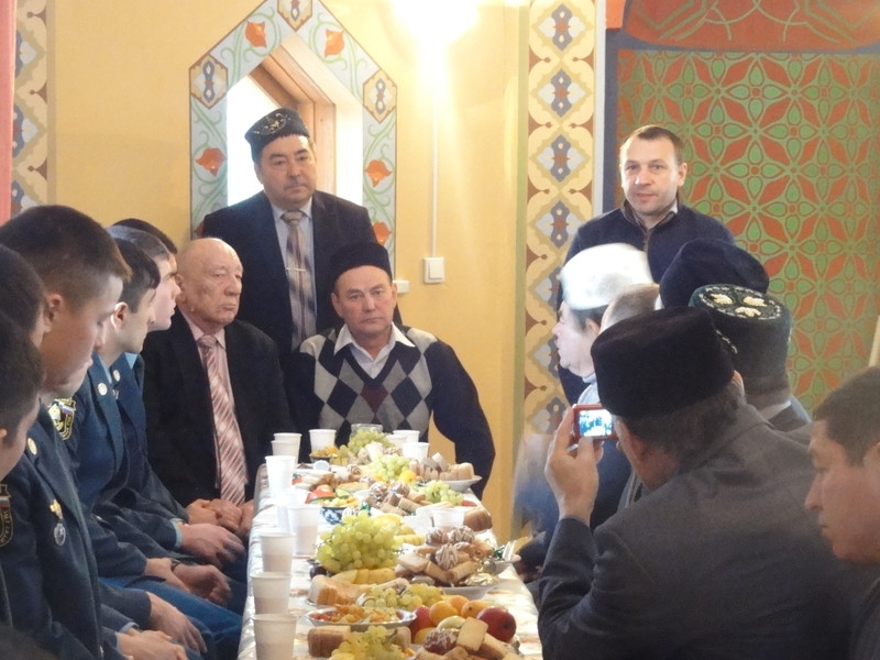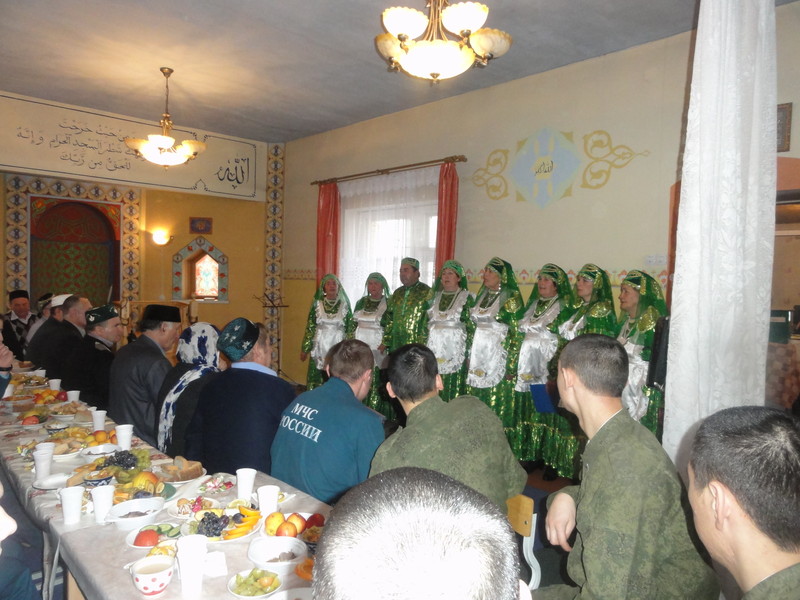 Калимулин Т.Б. рассказал курсантам и солдатам об истории города, коренных жителях Арамили. Не обошлось и без культурной программы, перед гостями выступил ансамбль «Дусляк» п. Первомайский. Был накрыт праздничный стол, все гости отведали настоящего плова.