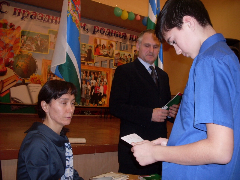 Документ, удостоверяющий личность, вручили инспектор отделения УФМС России по Свердловской области г. Сысерть Ахъямова О.А. и председатель Арамильской городской территориальной избирательной комиссии Борисов В.Ю. Вместе с паспортами юные граждане нашей страны получили экземпляр Конституции РФ.