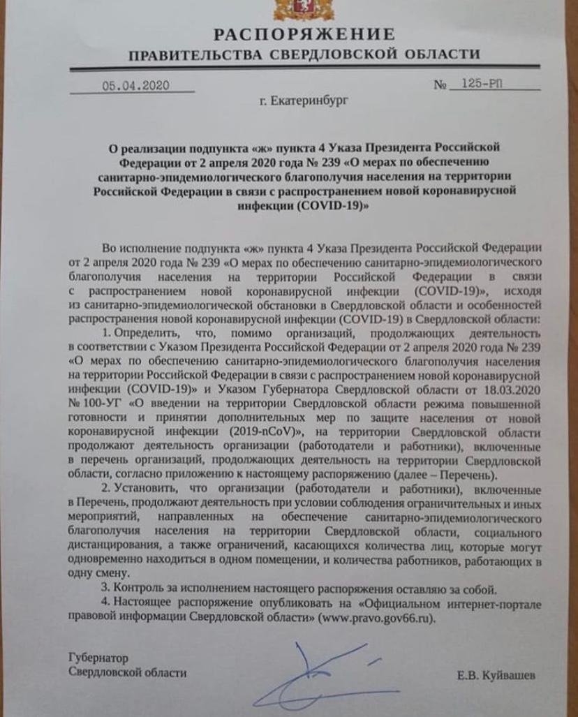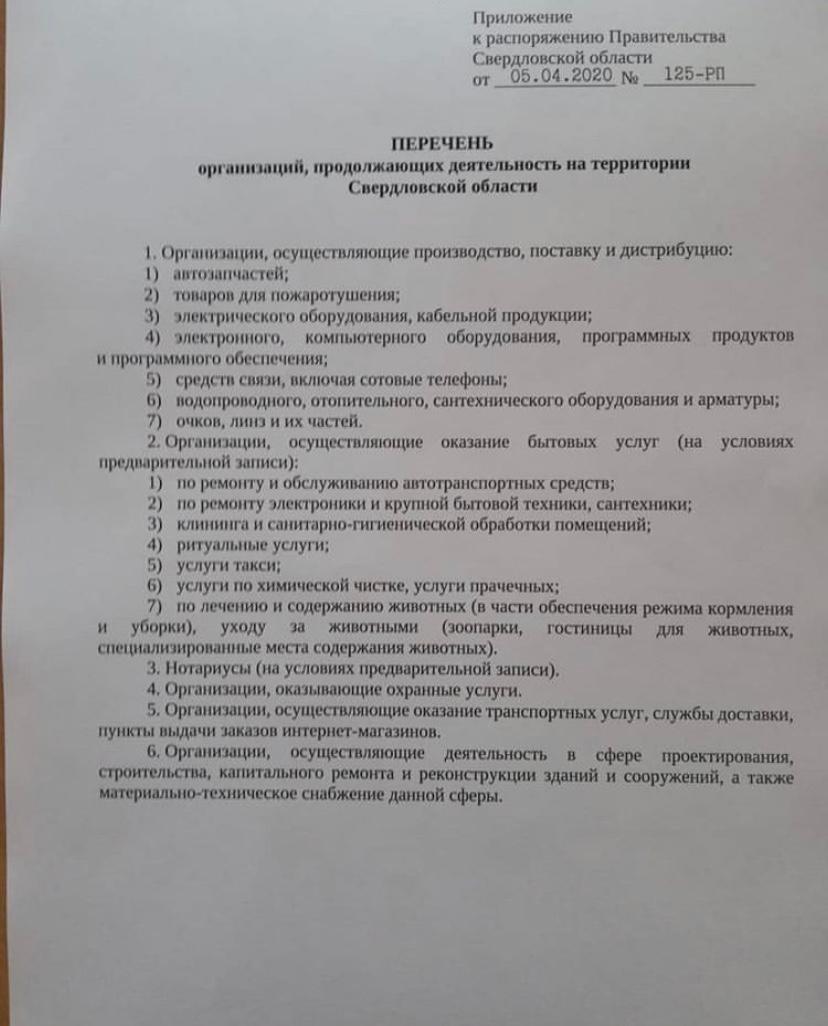 Расширение перечня организация, продолжающих деятельность на территории Свердловской области 05 апреля 2020 г.