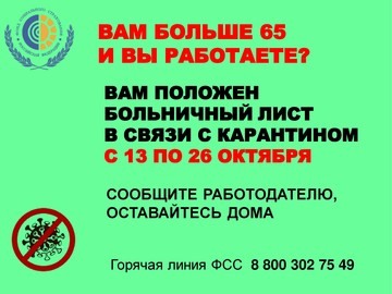 Вниманию работающих (застрахованных) лиц возраста 65 лет и старше 20 октября 2020 г.