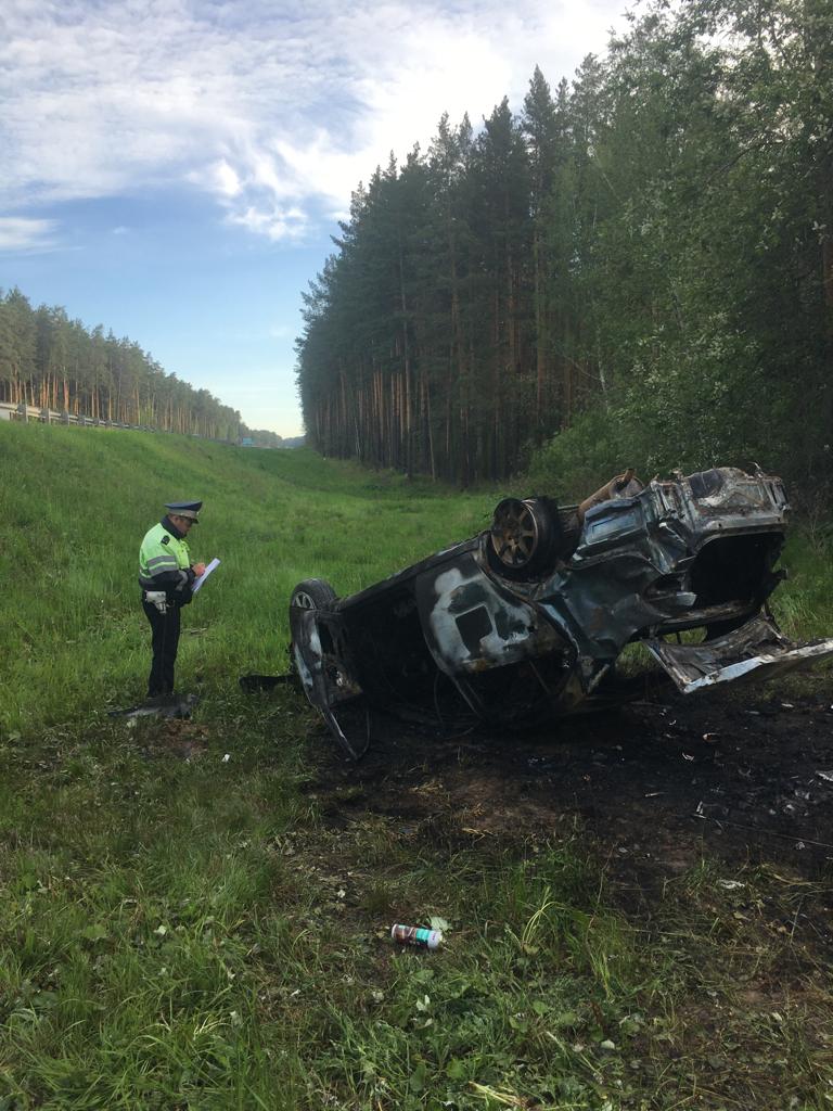 В результате аварии водитель автомобиля получил травмы различной степени тяжести, госпитализирован в МАУ ЦГКБ № 23 города Екатеринбурга. 62-летняя женщина-пассажир сгорела в автомобиле.