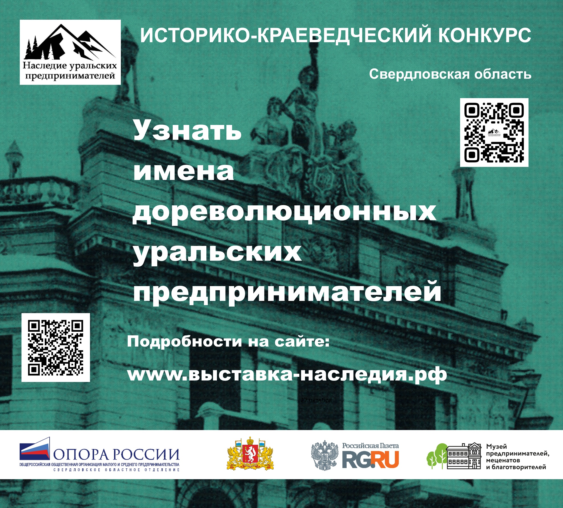 Для участия в Конкурсе "Узнай имена дореволюционных уральских предпринимателей" необходимо направить заявку по ссылке: https://выставка-наследия.рф/konkurs2022.