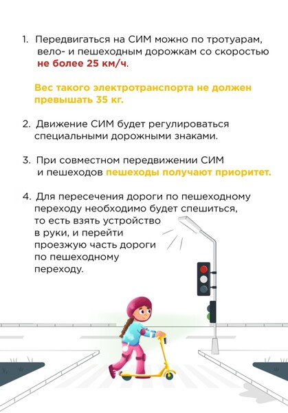 Самокат или другое устройство, двигающееся по дороге, должны иметь тормозную систему и фары белого и красного цвета. Новый статус не распространяется на обычные самокаты и роликовые коньки. Люди, использующие их, по-прежнему приравниваются к пешеходам.
