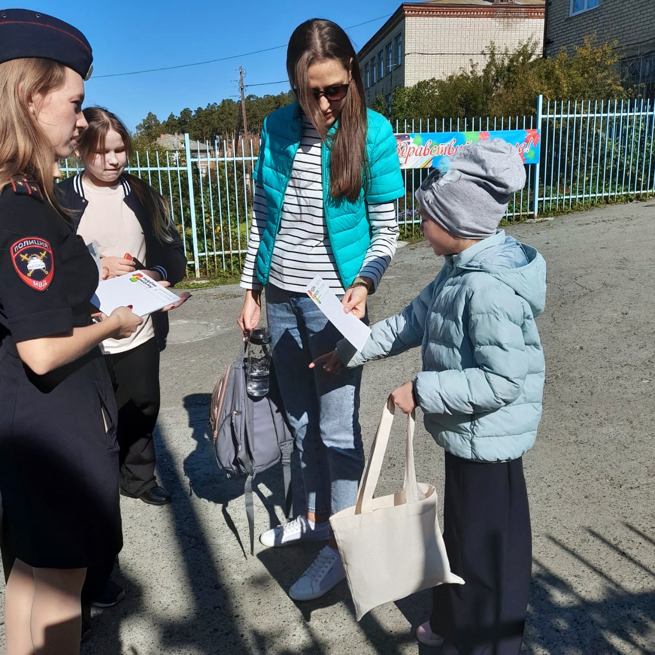 В ходе акции детям и их родителям вручали маршрутные листы «дом-школа-дом» и световозвращающие элементы.