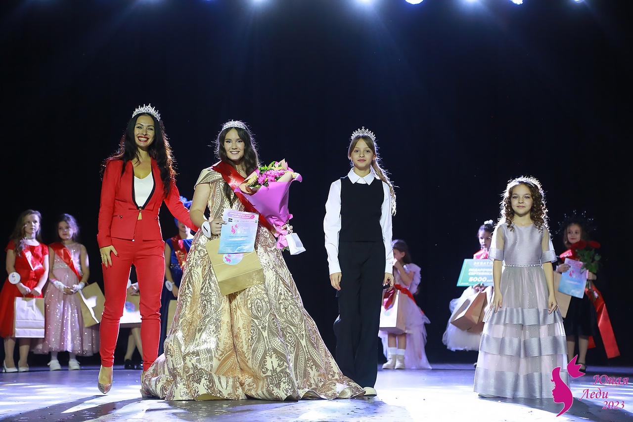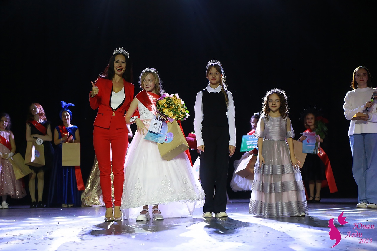 На «финальный аккорд» шоу маленькие и юные красавицы вышли в шикарных платьях. Церемонию награждения девочек помогала проводить «Миссис Арамиль – 2023» Анна Зализняк и победительницы прошлого сезона – Марина Мальшакова и Алиса Гирева. Они надели ленты и передали свои короны Софье Вазиковой и Веронике Батеневой, а также поздравили Арину Носову, Екатерину Карпову, Злату Гончарову и Варвару Рыбакову со званием второй и третьей вице-мисс «Юная леди – 2023».