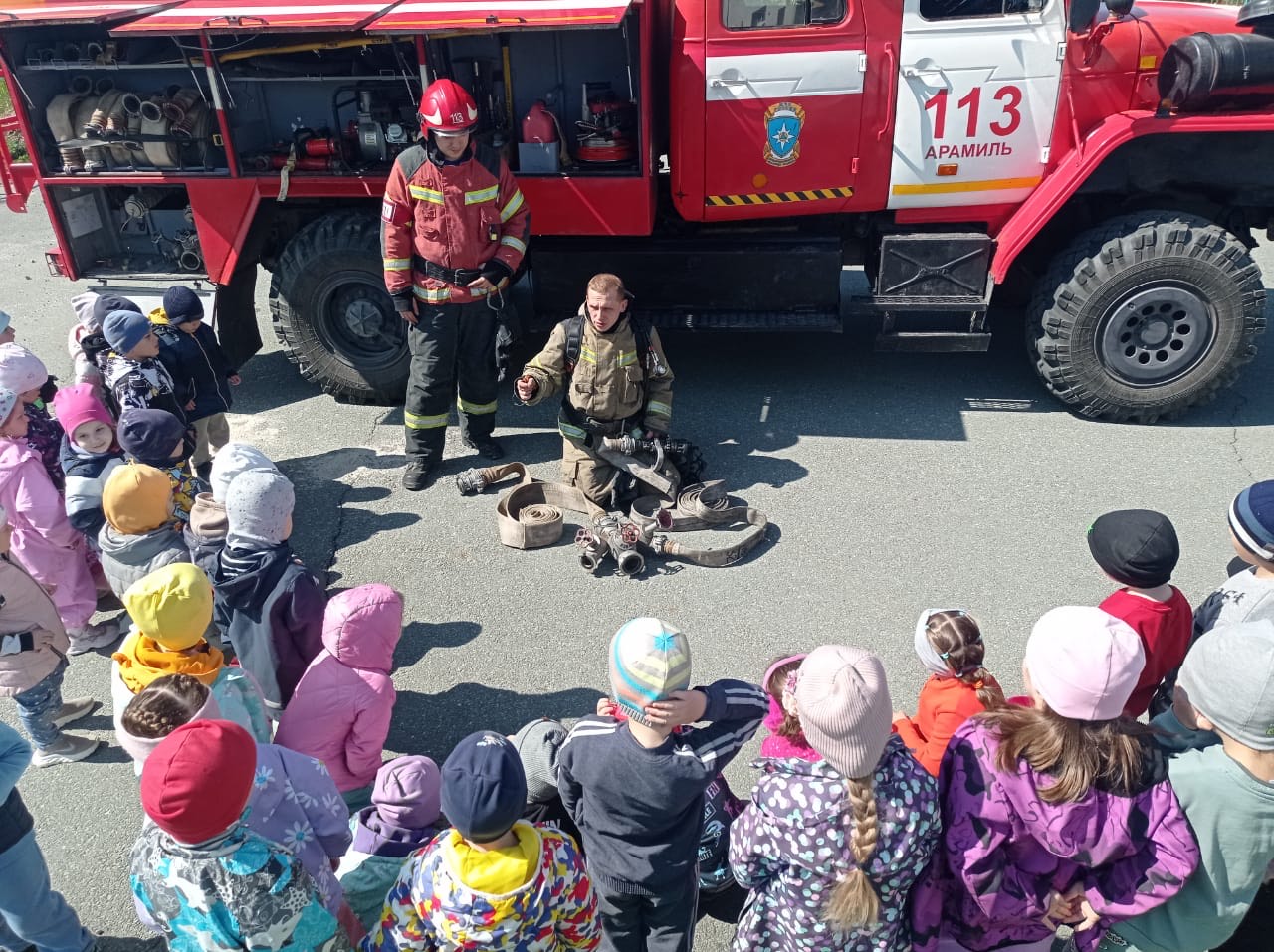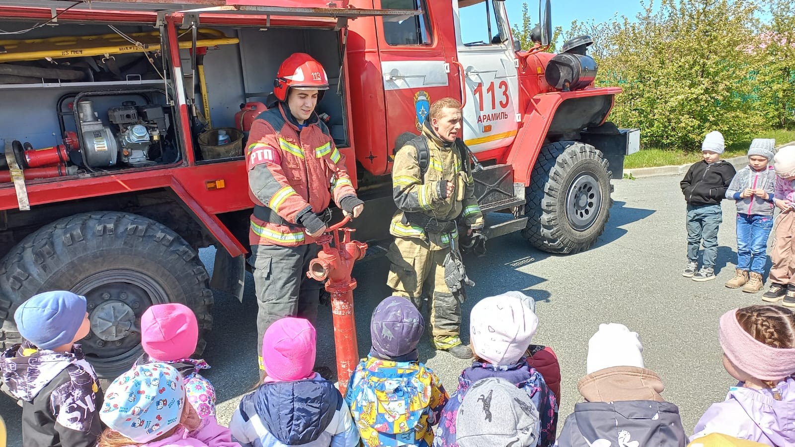 День 16 мая детишки из детского сада «Золотой ключик» города Арамиль запомнят на всю жизнь, ведь сегодня у них в гостях побывали настоящие пожарные.