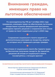 Внимание граждан имеющих право на льготное обеспечение! 12 августа 2024 г.
