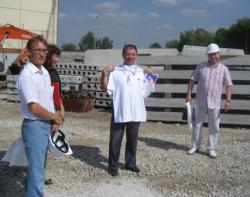 Александр Прохоренко кроме того, что всех поздравил, лучшим работникам вручил грамоты от администрации округа. Отмечены в этом случае были каменщики И.М. Афонькин и А.Г.Филатов, монтажники железобетонных конструкций М.А. Мужев и Ю.Н. Поломин, их бригадир Ю.М.Корнеев, а также производитель работ С.Ф. Биккинин. После приятной процедуры все собравшиеся прошли на объект, чтобы посмотреть процесс вживую. Хоть дом не готов еще даже наполовину, вид сверху открывается отличный. Работы на объекте, кстати, несмотря на праздник никто не отменял, и прямо на глазах гостей строители уложили одну из плит.
