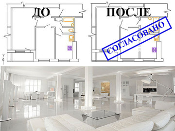 Согласование потребуется при демонтаже или возведении межкомнатных перегородок, пробивке проемов и арок в несущих стенах или изменение их расположения, изменении площади ванной комнаты или ее объединение с санузлом, монтаж, демонтаж или перенос сантехнических узлов и оборудования, пристройка дополнительных помещений, создание балкона или лоджии, либо их трансформация в жилую площадь квартиры.
