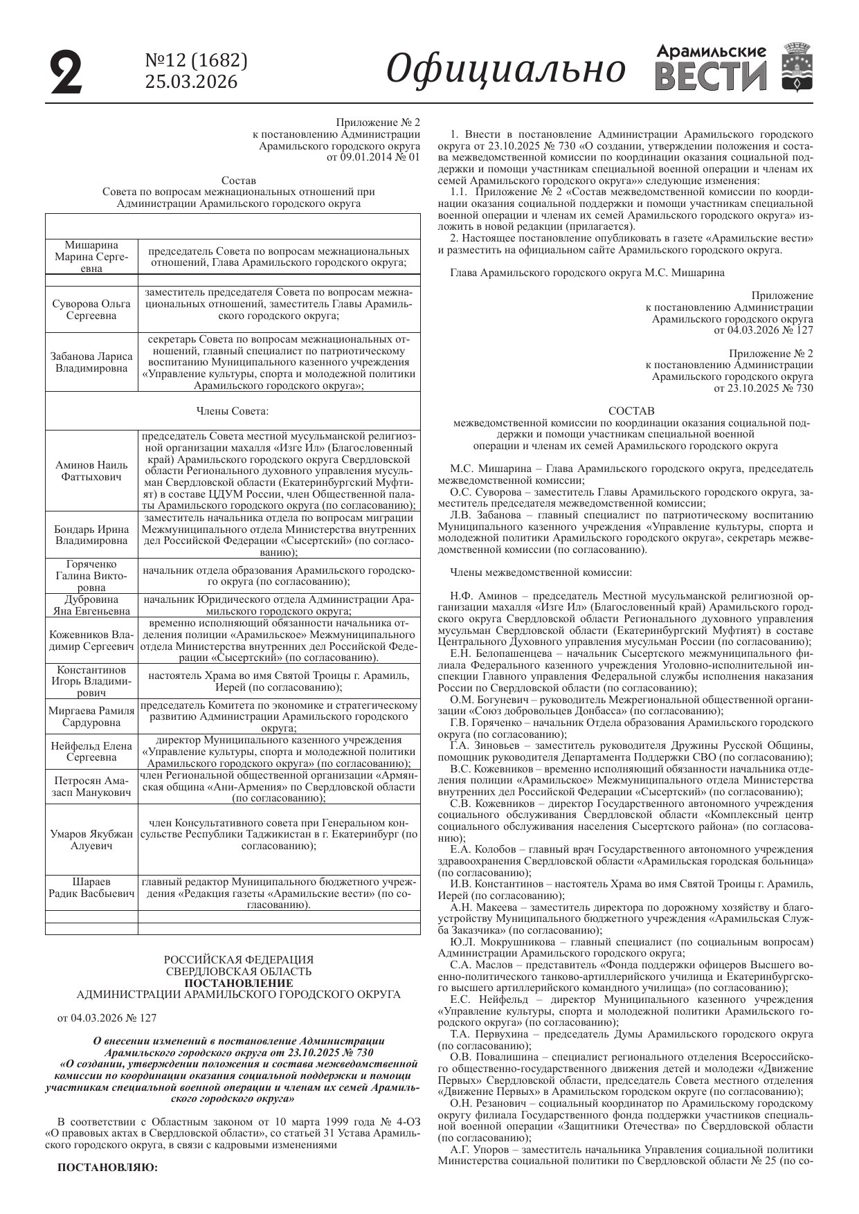 - МВК по формированию у населения Арамильского городского округа здорового образа жизни