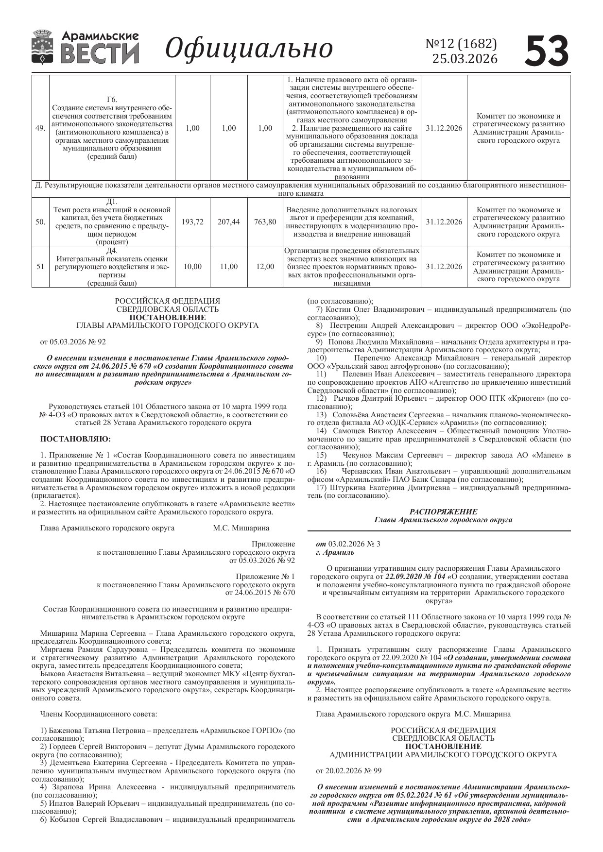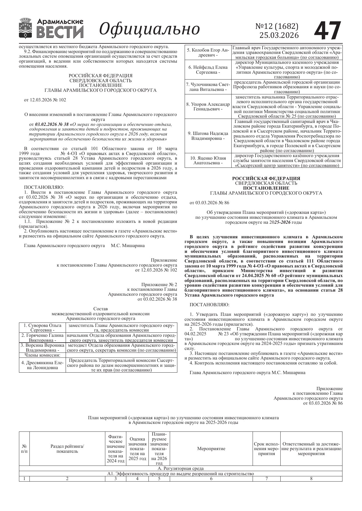 - МВК по созданию условий для роста ожидаемой продолжительности жизни и снижению преждевременной смертности населения на территории Арамильского городского округа