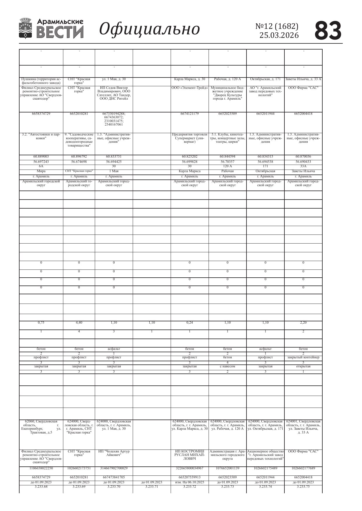 - Схема размещения гаражей, являющихся некапитальными сооружениями и мест стоянки технических или других средств передвижения инвалидов вблизи их места жительства на территории Арамильского городского округа