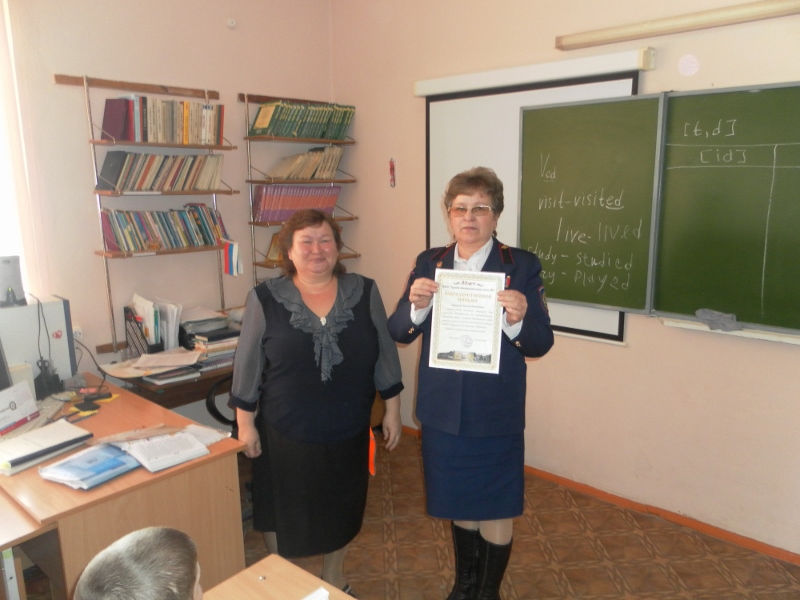 Педагогический коллектив в свою очередь высоко оценил сотрудничество и выразил искреннюю благодарность за систематическую пропаганду правил пожарной безопасности среди учащихся данной школы, оказание методической помощи в работе дружины юных пожарных «Прометей» и вручил инструктору Сысертского ВДПО Степуре Татьяне Леонидовне благодарственное письмо, за подписью директора Аксеновой А.А.