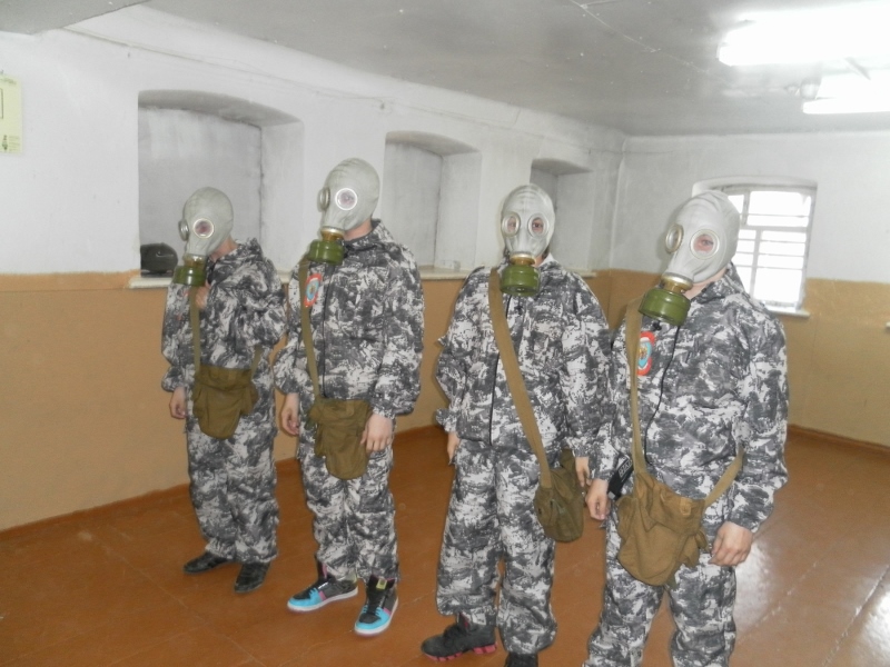 Агитбригада представила свое выступление, стихи и отгадывание загадок. Но самым интересным для ребят была демонстрация одевания противогазов. Ребята из ДЮП «Искра» объяснили, что его одевание должно осуществляться за 9 секунд.