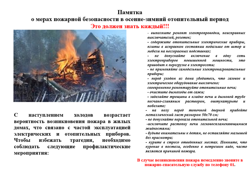 С наступлением осенне-зимнего периода соблюдайте меры пожарной безопасности: